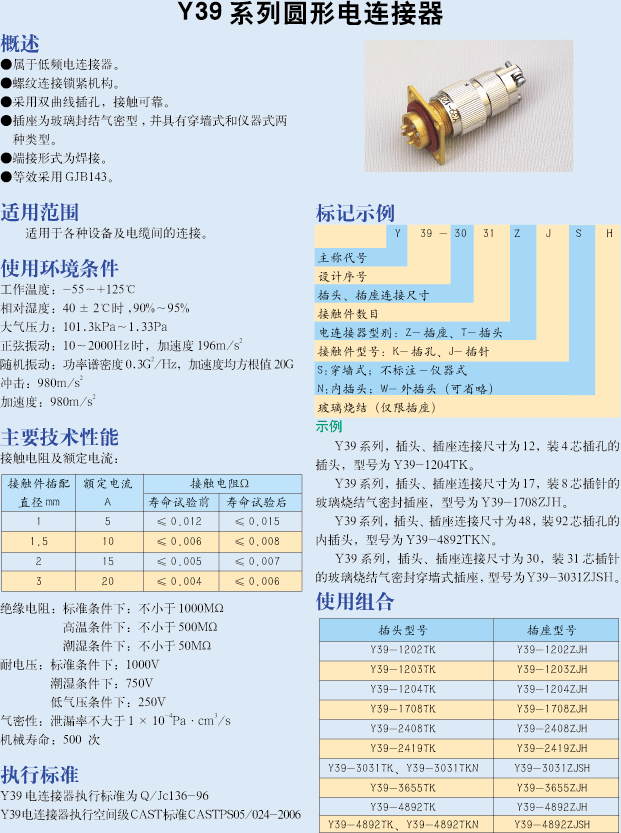 - Y3系列圓形航空插頭(GJB2905-2004)