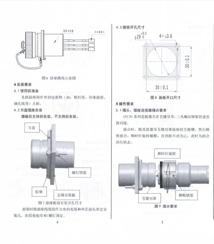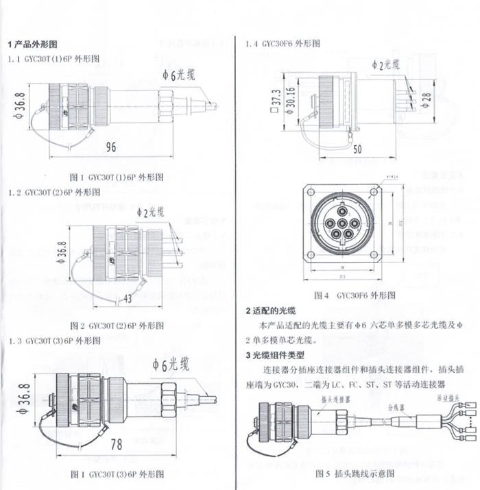 端為GYC30,二端為LC,FC,ST,活動連接器,具體尺寸和使用要求見下表。