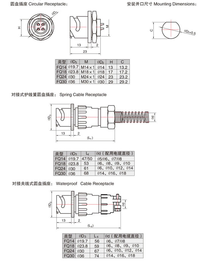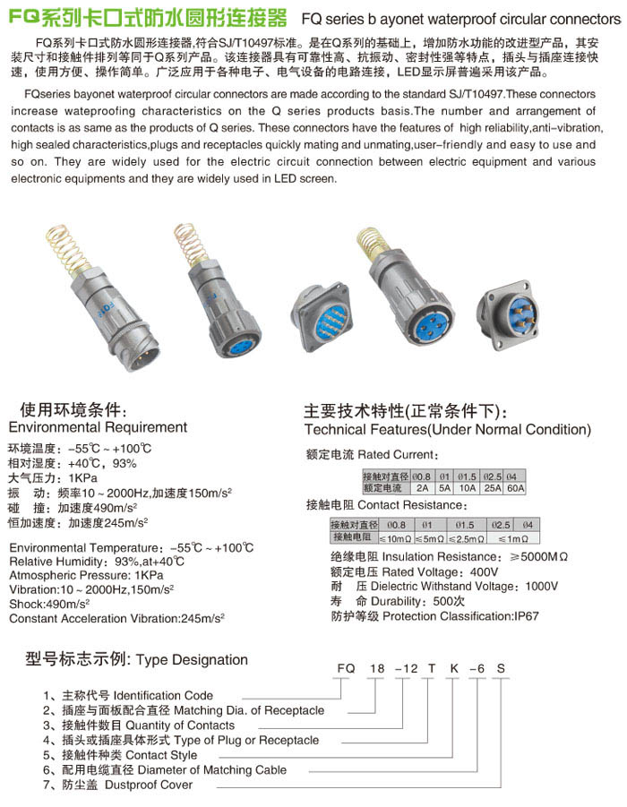 FQ-1803ZJ/TK圓形防水電連接器,接觸件3芯,2.5mm針孔,額定電流可達(dá)30A,螺旋卡口連接,插頭與插座之間有密封圈設(shè)計(jì),增加防水功能,插頭尾巴有直式和彎式,夾線防水尾部,出線孔徑客戶可選擇,訂貨數(shù)量多,可以定做不同大小的電纜罩。