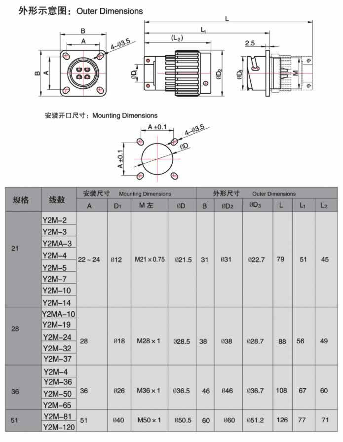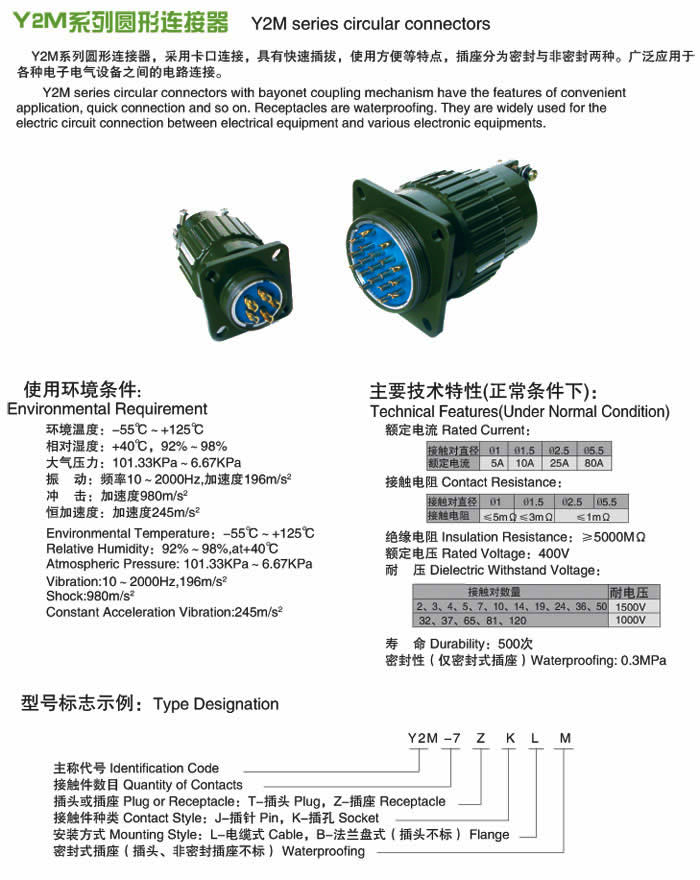 Y2M系列圓形航空插頭: