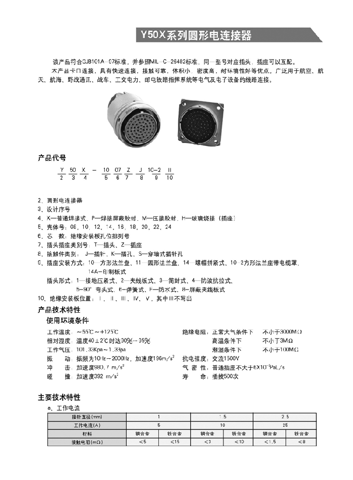 - Y50X系列圓形航空插頭(GJB598A-96)