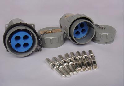 插頭和插座的連接方式為卡口式快速連接,接觸件與導(dǎo)線端接形式為壓接,接觸件采用彈性齒圈支承定位,后裝前拆結(jié)構(gòu)。插頭座采用ZL-102壓鑄鋁合金,接觸件鍍銀,接觸可靠,接線方便,密封和絕緣性好,具有防水,防塵,防震等特點(diǎn)。