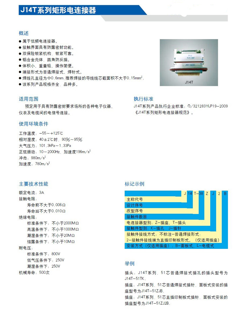 航空航天J14T-38ZKM矩形連接器: