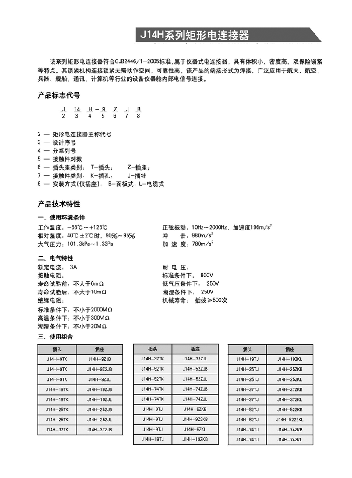 J14H系列矩形航空插頭: