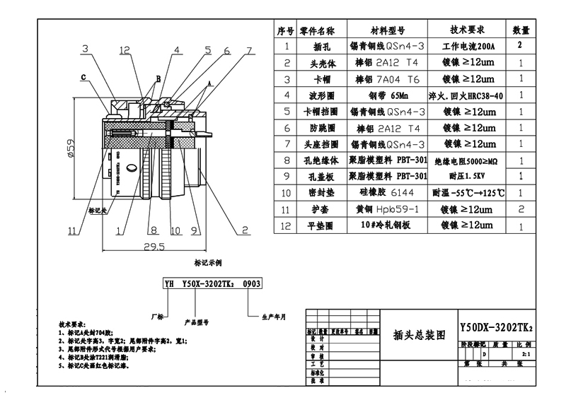 2芯200A圓形汽車專用連接器,目前是市場常用成熟產(chǎn)品,無燒焦,打火花現(xiàn)象,外殼體有鋁,銅,不銹鋼,任由客戶選擇。接觸件2芯,10mm粗細(xì),鍍金層達(dá)4um,插座與插頭采用卡口螺旋連接方式,安全可靠。插座開孔51mm,螺絲固定中心距離50mm,固定后穩(wěn)定可靠,防水,防震,無松動(dòng)出現(xiàn)。表面鍍層化學(xué)鍍鎳,美觀大方。也可客戶的需求,選用別的顏色。該產(chǎn)品廣泛用于應(yīng)急通訊車,應(yīng)急電源車,發(fā)電機(jī)輸送電源設(shè)備之間的線路連接。