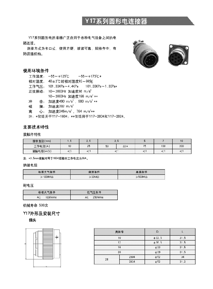 - Y3系列圓形航空插頭(GJB2905-2004)
