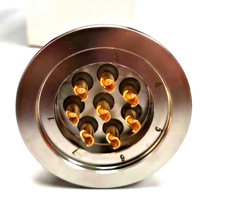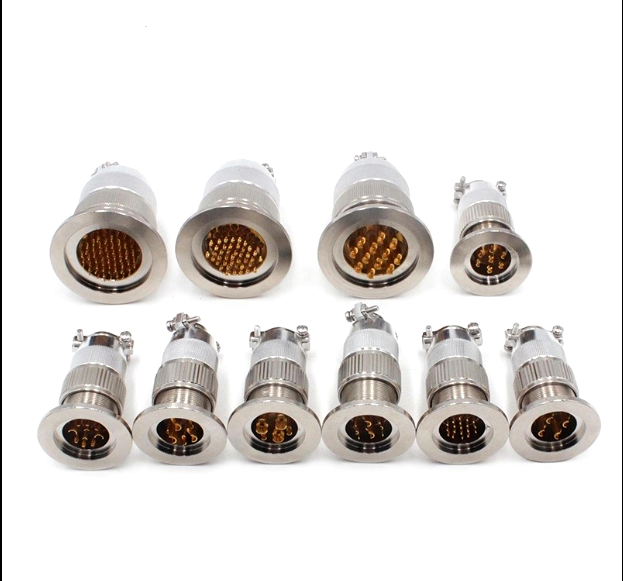該型號是我公司新開發(fā)產(chǎn)品,每根插針3.0mm,電流可達(dá)30A左右,表面鍍金,接觸電阻小,插拔柔和,無打火花現(xiàn)象。 采用KF40法蘭固定形式,安裝方便快捷。插針固定采用玻璃燒結(jié)工藝,密封性能好,廣泛用于真空設(shè)備,密封容器中, 在抽壓,或施壓狀態(tài)下,不漏氣,正常電流或信號的輸送。與插頭現(xiàn)有兩種連接方式,螺紋和螺旋卡口連接,建議選用 卡口鎖緊,連接不費(fèi)力,三只鉚釘雙重鎖緊。