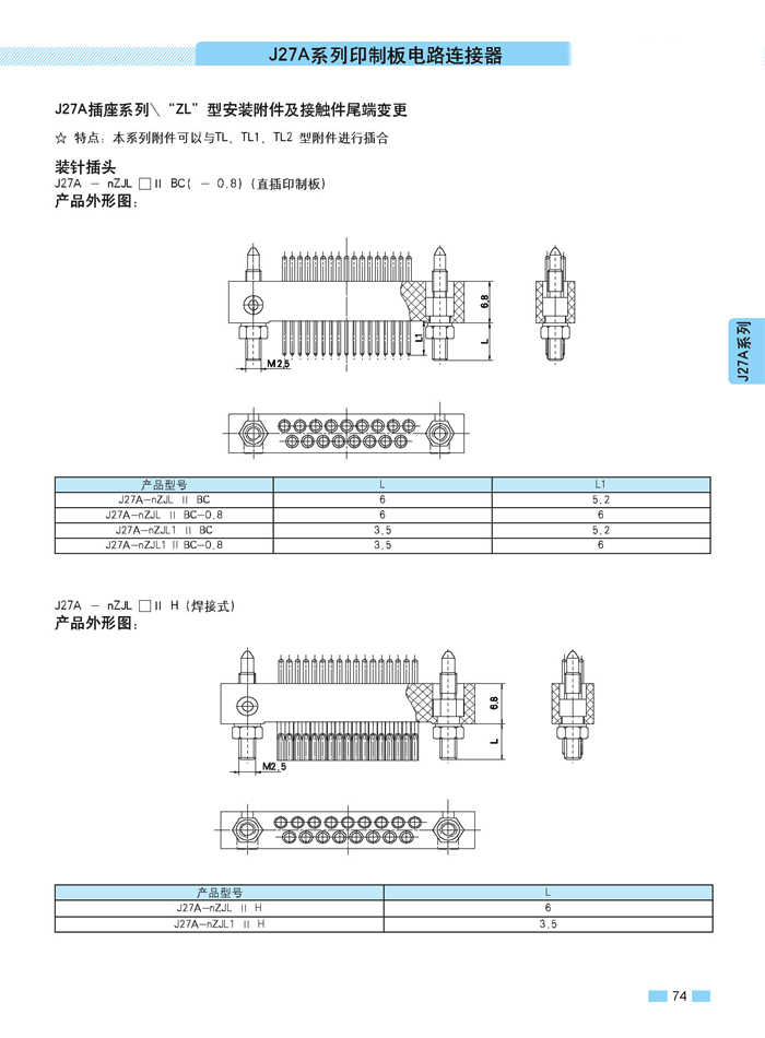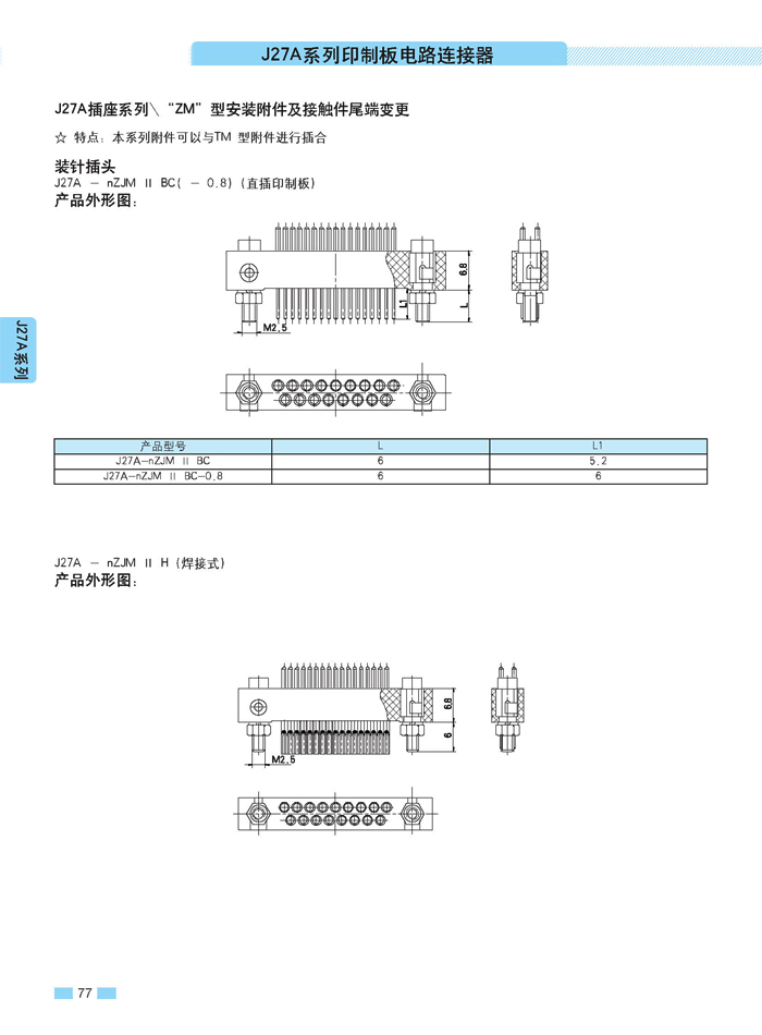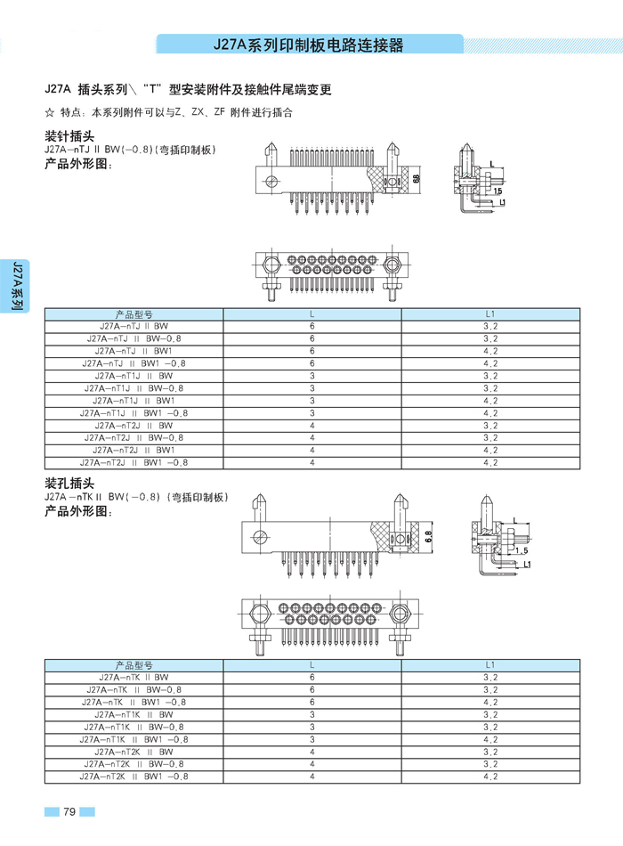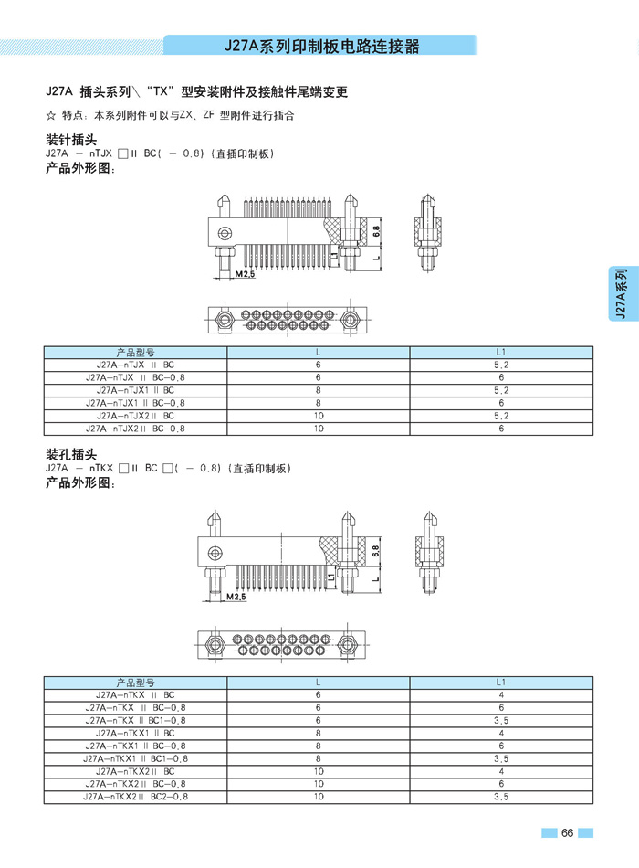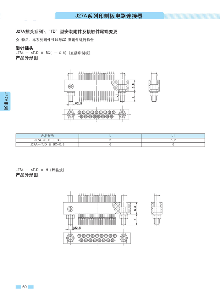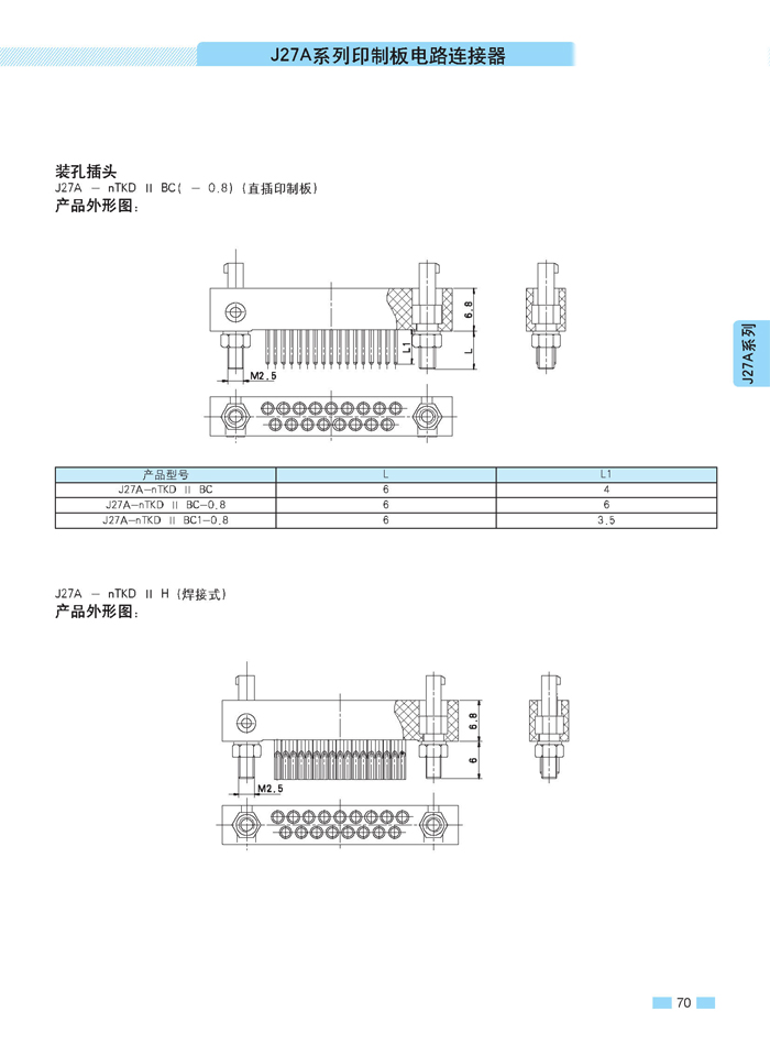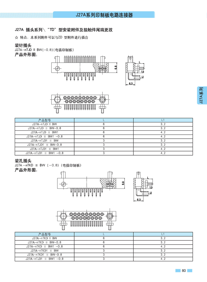J27A系列印制板電路連接器,符合IEC130標(biāo)準(zhǔn)和MIL-C-55302標(biāo)準(zhǔn)要求,接觸數(shù)目有17,29,41,53,65,72,84,96芯等規(guī)格,連接器尾端端接形式分為直插印制板式、彎插印制板式、焊接式和壓接式,安裝鎖緊形式靈活,定位導(dǎo)向裝置有36種方位組合,具有很強(qiáng)的防誤插功能。http://www.jshkdz.com/product.asp?parentid=2