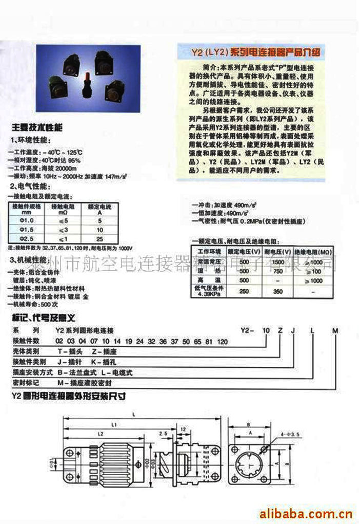 LY2系列圓形電連接器(航空插頭)簡介:根據(jù)用戶需求開發(fā),采用Y2系列型譜和接觸件,殼體用高強度鋁合金材料開發(fā)加工而成,除具有Y2型連接器性能外,還有殼體機(jī)械性能,電性能優(yōu)于Y2的特點,可跟Y2系列完全兼容。