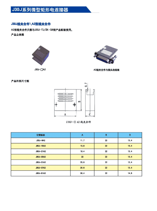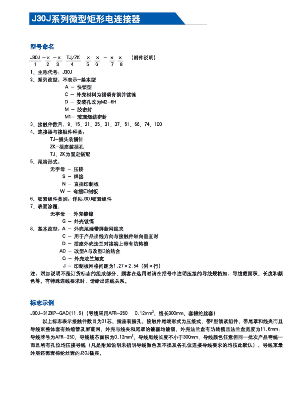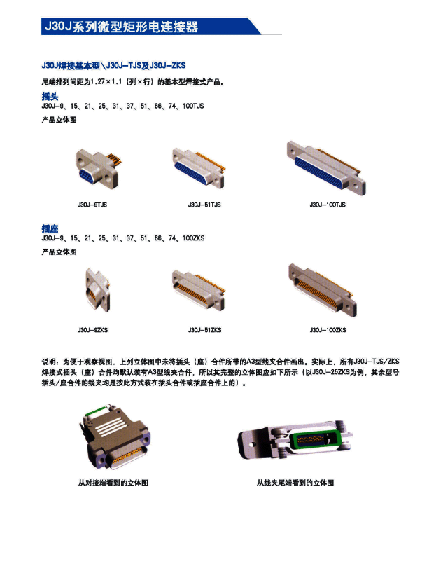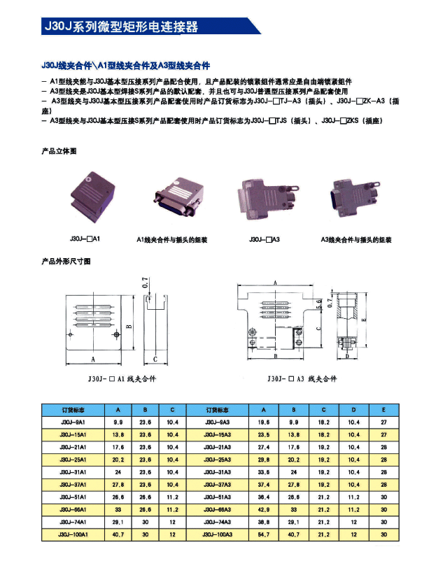 1.在J30系列產(chǎn)品的基礎(chǔ)上增加了鋁合金外殼與各種鋁合金尾夾; 2.采用絞線式插針(俗稱(chēng)麻花針),單個(gè)接觸點(diǎn)達(dá)七個(gè),提高了產(chǎn)品的接觸可靠性; 3.采用1.27mm網(wǎng)格,接觸件密度大、體積小、重量輕; 4.適用導(dǎo)線線芯截面積為0.07~0.15mm2,尾端可以根據(jù)用戶(hù)要求進(jìn)行布線; 附:本產(chǎn)品的鎖緊組件與產(chǎn)品組裝在一起提供,如不需鎖緊組件請(qǐng)?jiān)诤贤凶⒚鳌?/span>