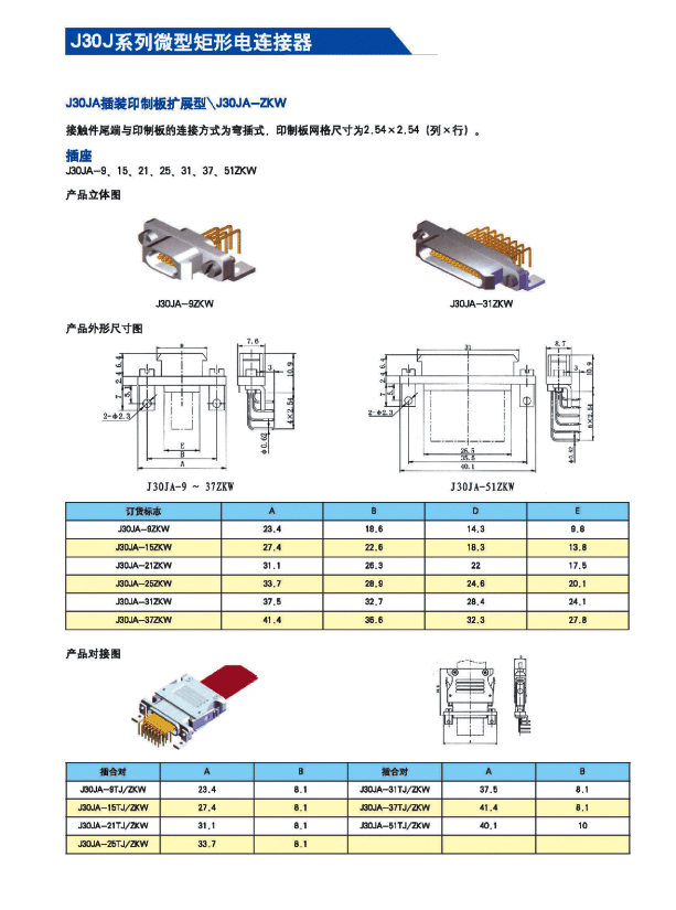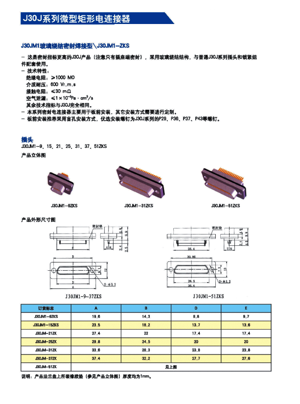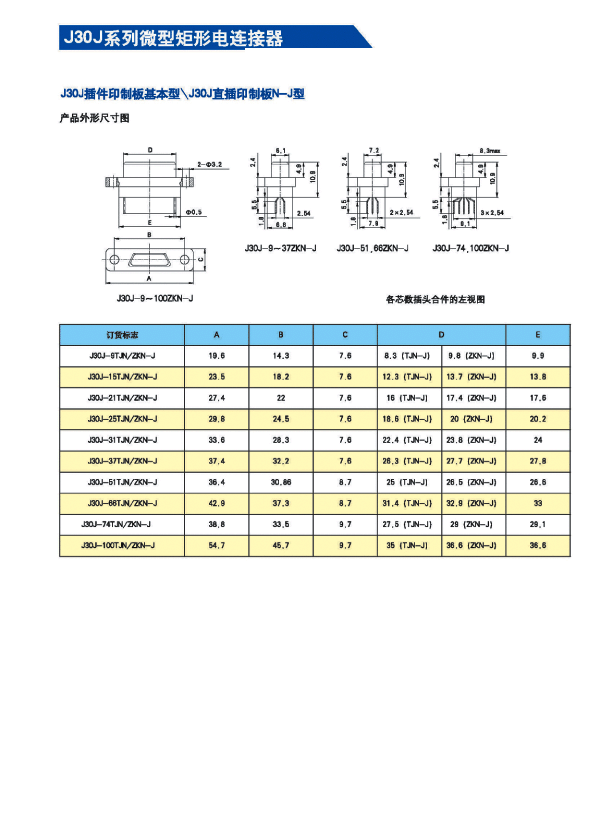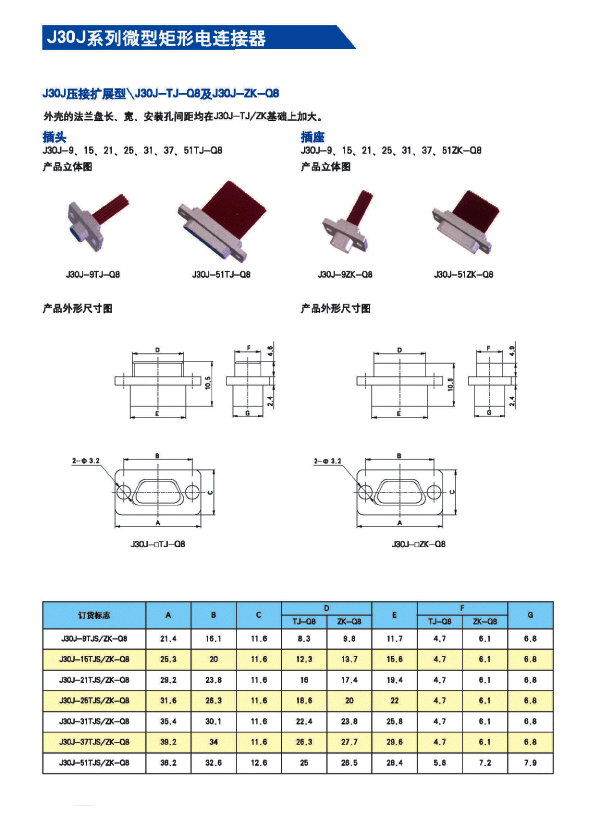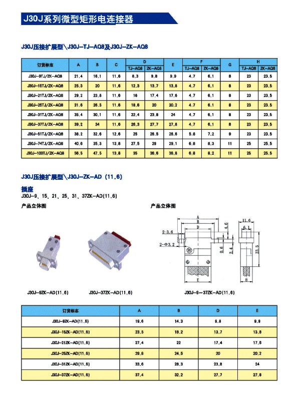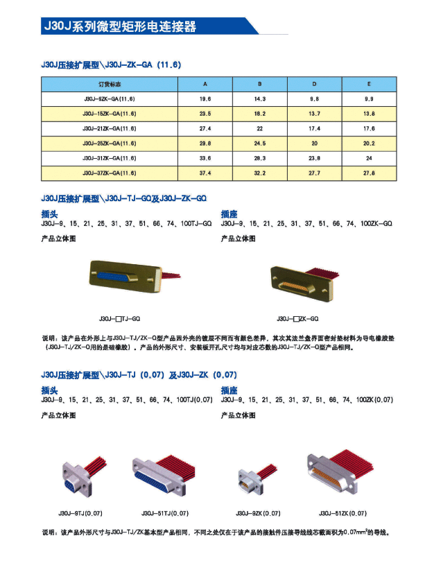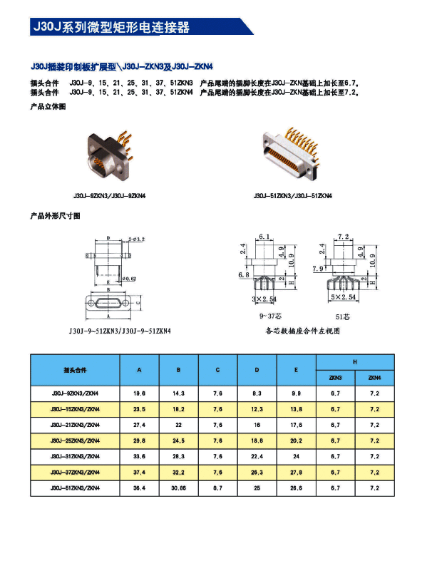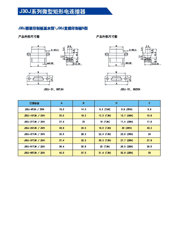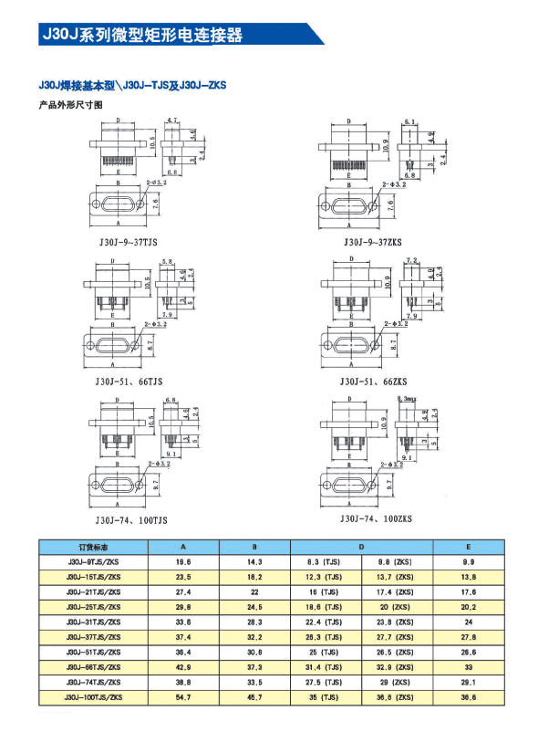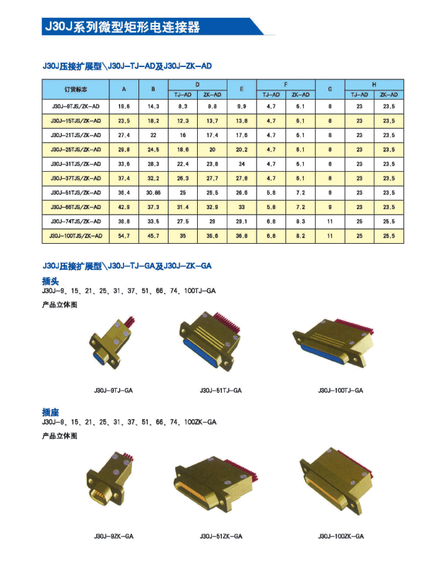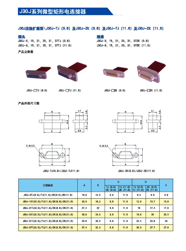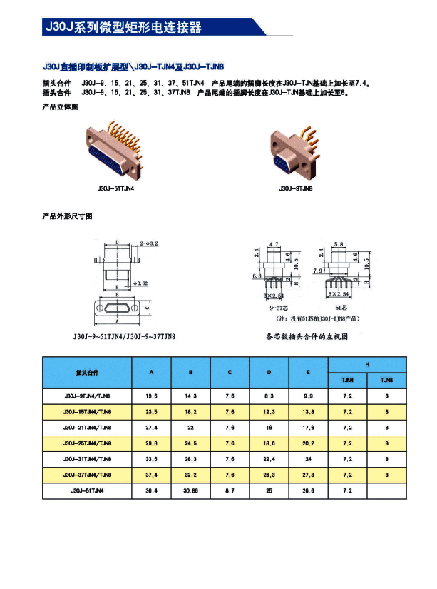 J30J系列微矩形航空插頭: