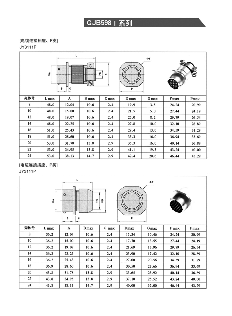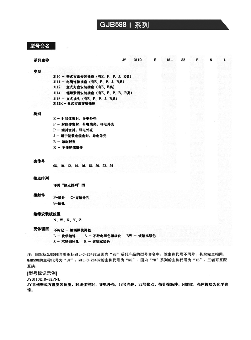 * 廣泛應(yīng)用于各類軍用、民用設(shè)備中 ——?dú)んw:鋁合金 ——鍍層:不標(biāo)記 鍍鎘橄欖褐色,導(dǎo)電外殼 L 類 化學(xué)鍍鎳,導(dǎo)電外殼 A 類 黑色陽(yáng)極化,非導(dǎo)電外殼 ——絕緣體:氯丁橡膠 ——封線體和密封圈:硅橡膠材料 ——接觸件:銅合金鍍金 ——隨機(jī)振動(dòng):頻率10~2000Hz 加速度147m/s2 ——沖擊:加速度490m/s2 ——機(jī)械壽命:500次 環(huán) 境 性 能: ——使用溫度:-55℃ ~ +125℃ ——相對(duì)濕度:40℃時(shí),達(dá)95±4% ——耐鹽霧:鍍鎘:500小時(shí);鍍鎳:48小時(shí) ——密封性: 封線體密封 泄露率小于4.6×102 Pa cm3/s 燒結(jié)密封 泄露率小于0.1Pa cm3/s http://www.bj-zql.net/Product/yuanxinghangkongchatouhangkongjiechajian/