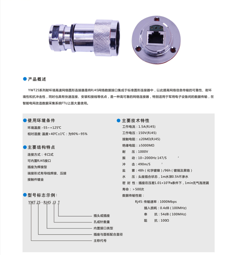 YWT25-RJ45數(shù)據(jù)采集FTU專用圓形電連接器: