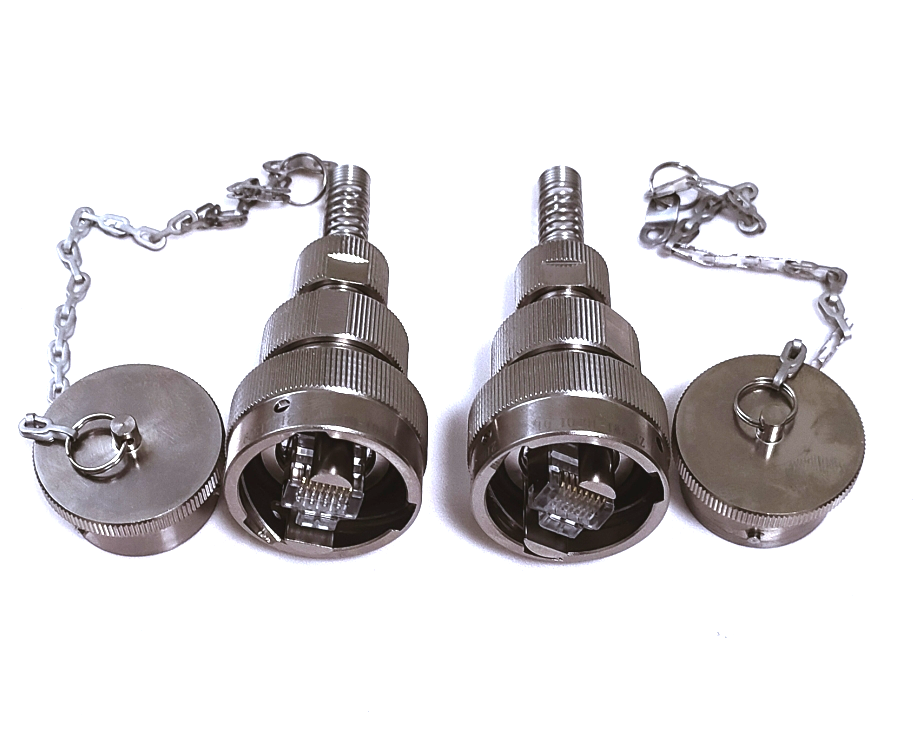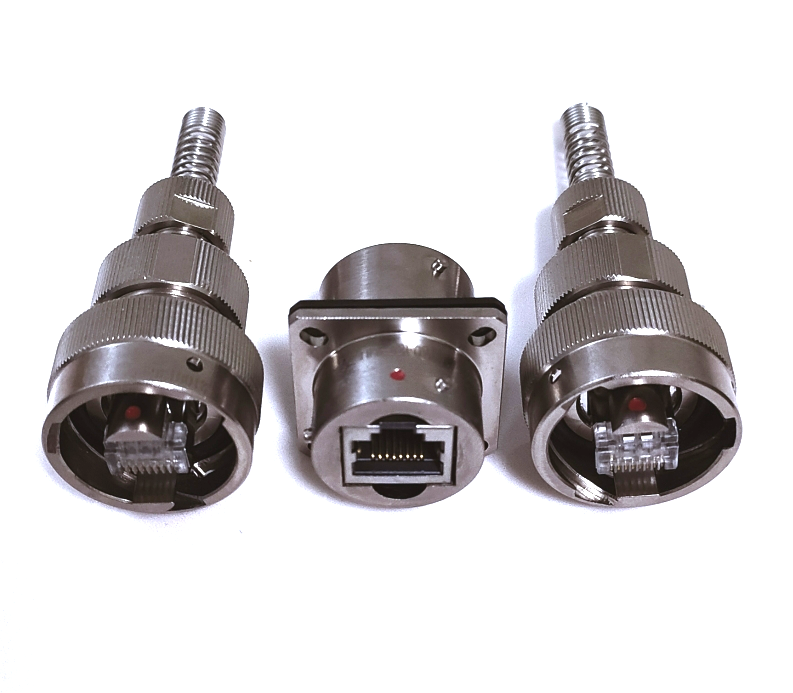 RJ45網(wǎng)口太網(wǎng)防爆連接器 RJ45網(wǎng)口太網(wǎng)防爆連接器,外殼全金屬材料,有鋁合金和不銹鋼選用。不用的時(shí)候,有專用的防塵蓋,插座和插頭連接后 密封性能好,防水防塵,杜絕一切可能的滲入,防止可燃?xì)怏w引起的爆炸。網(wǎng)絡(luò)傳輸采用8根線水晶頭,屏蔽,速率快, 一般用于I區(qū)和II區(qū)防爆設(shè)備之間的數(shù)據(jù)傳輸。