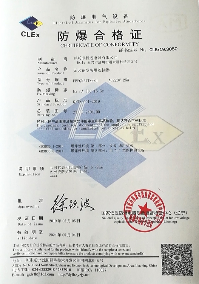新型防爆電連接器證書哪家有? 新型防爆電連接器證書哪家有? 跟著科技發(fā)展的步驟,危險操作區(qū)的控制是十分必要的,通過遠(yuǎn)程控制設(shè)備是最嗨的途徑,我公司現(xiàn)設(shè)計研制小型電連接器,防水 基礎(chǔ)上,防腐,防爆,在環(huán)境惡劣的條件里,保證外殼的防腐性能,不影響使用。在氣體有泄漏,火花有濺出,粉塵有噴射的情況, 必須保證防爆,杜絕事故的發(fā)生,一般用于礦井,測井,儲油場所,氣體安裝設(shè)備上。使用前,防爆電連接器國家有嚴(yán)格的監(jiān)測,頒發(fā)了 合格防爆證書,泰興智遠(yuǎn)電器有限公司升辦了兩種:1.無火花型防爆電連接器證書 2.隔爆型防爆電連接器證書。